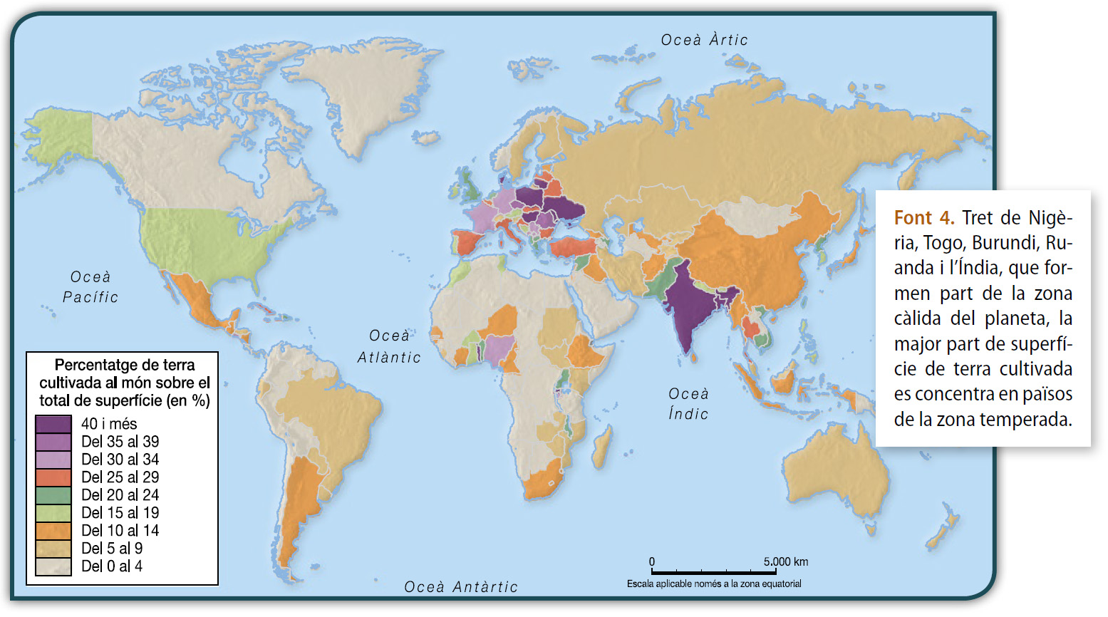 Es calcula que un 37,7 % de la superfície de la Terra està dedicada a l'agricultura, la ramaderia i l'explotació dels boscos. Aquestes activitats, que corresponen al sector primari, ocupen el 48 % de la població activa del món i constitueixen les actuacions humanes que han modificat més extensió de terres del planeta. L'objectiu principal d'aquestes activitats és l'obtenció d'aliments, malgrat que els productes agropecuaris també s'utilitzen com a matèries primeres industrials. [Font 4]