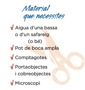 1. Amb l'ajuda d'un comptagotes agafa una gota del pot, diposita-la damunt un portaobjectes i cobreix-la amb