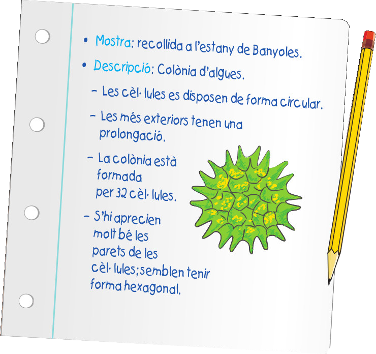 3. Dibuixa i anota tot el que hi vegis. Pots usar una guia per tractar d'identificar alguns dels organismes microscòpics que hi observis.