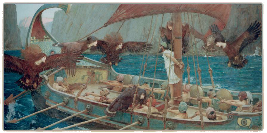 Ulisses desitjava sentir aquell cant, però fent cas dels consells de Circe, tapà les orelles dels seus companys i ordenà que el lliguessin al pal de la nau.