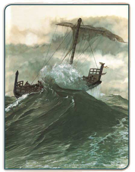 - El bot amb els vents d'Èol, que van provocar una tempesta que desvià la nau del seu camí.