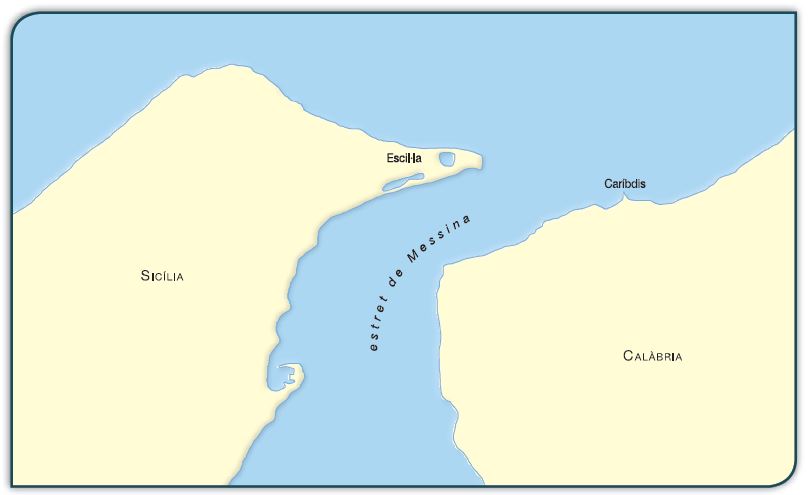 - El pas per l'estret on vivien Escil·la i Caribdis, un perill per als navegants.