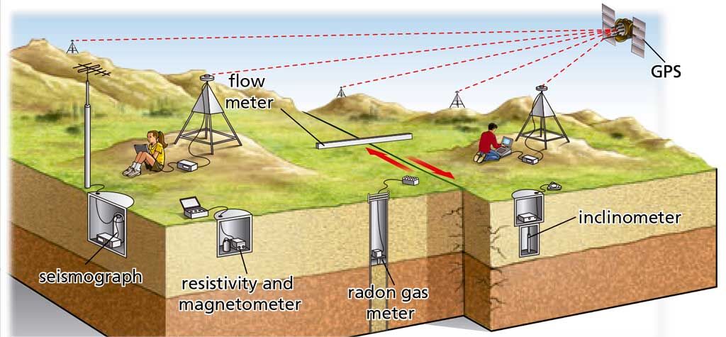 Find out what instruments are used to predict earthquakes and volcanic eruptions. Then select the instruments used from the following list.