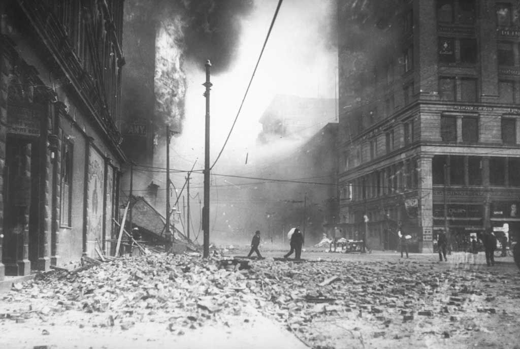 Fires that burn out of control because underground gas and water pipes are destroyed, like the earthquake that completely destroyed San Francisco in 1906.