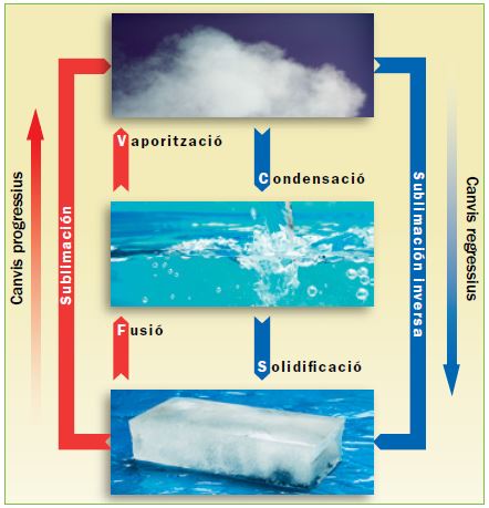 a) En les condicions de l'escorça terrestre, la matèria es presenta en els tres estats més coneguts: sòlid, líquid i gasós.