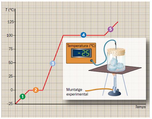 El gràfic de la figura inferior mostra la corba de calfament d'una substància donada a p = 1 atm: