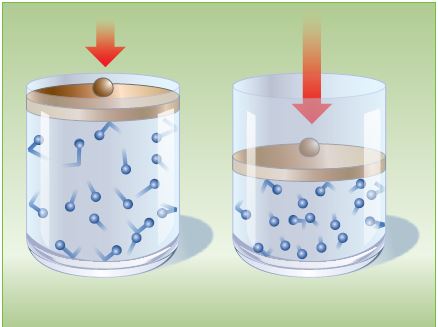 La figura mostra una certa quantitat de gas en dos moments diferents. Raona en quin dels dos casos és major la temperatura.