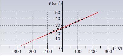 b) A continuació decidixen tornar a representar els valors obtinguts, però expressant ara la temperatura en l'escala absoluta i el volum en litres. Tornarien a obtindre-hi una línia recta?