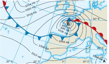 En els mapes del temps, la pressió se sol expressar en hectopascals, hPa, i fins fa poc, en mil·libars, mb. Dibuixa el mapa inferior en el quadern amb els valors de la pressió en hPa.