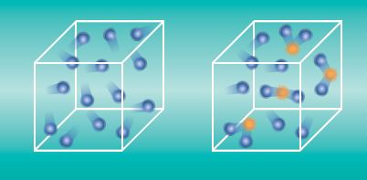 b) En obrir un recipient amb perfum en una habitació, al cap de poc de temps l'olor arriba a tots els llocs de l'habitació.