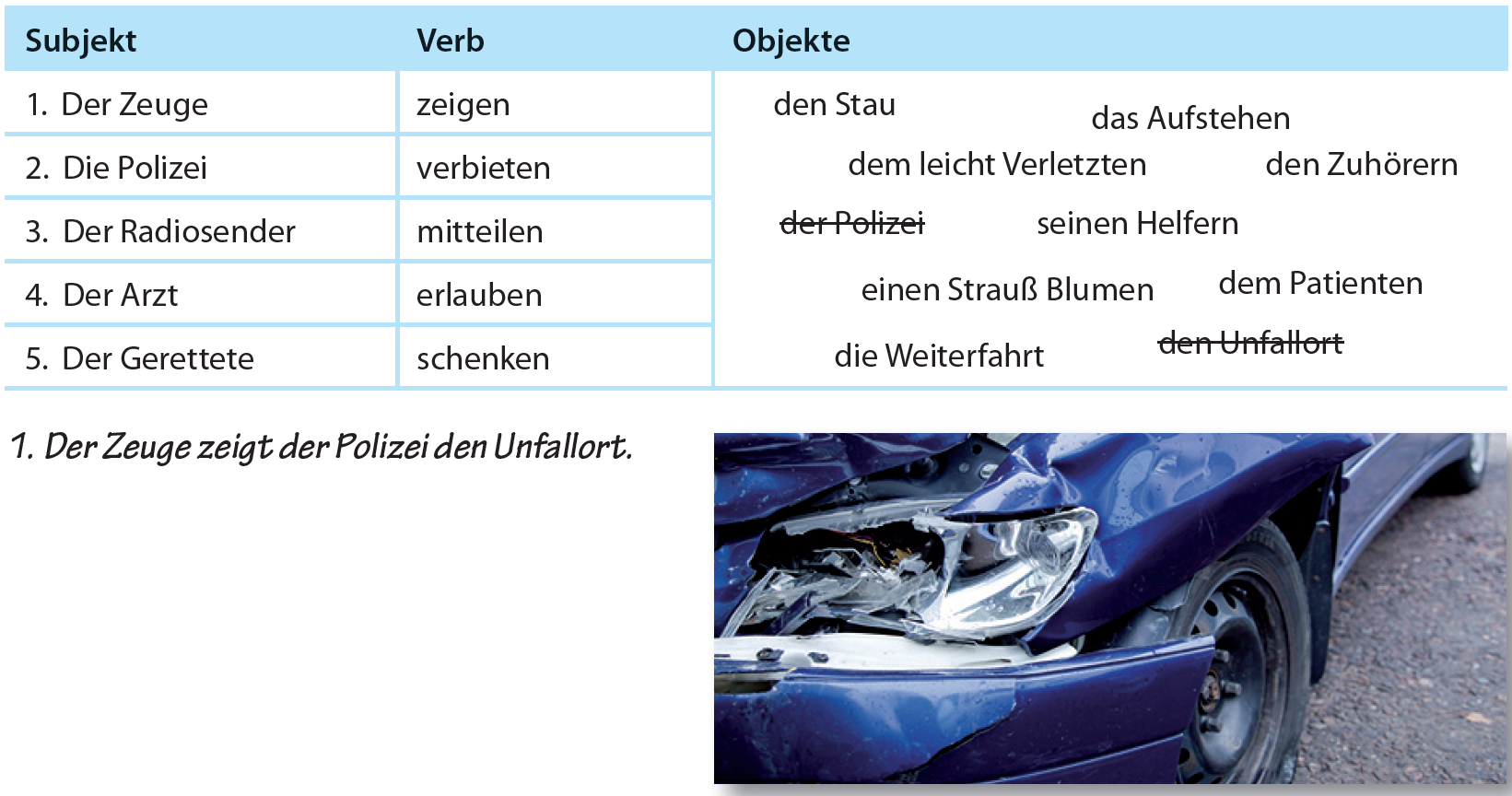 Verben mit Dativ und Akkusativ. Suche passende Objekte und bilde Sätze.