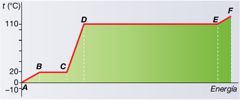 a) Indica el estado en qué se encuentra la sustancia en los tramos AB, BC, CD, DE, y EF.