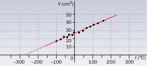 - Un grupo de científicos ha estudiado cómo varía el volumen de cierto gas con la temperatura, manteniendo constante la presión. Han realizado catorce experiencias y las parejas de valores V-t los han representado, obteniendo la siguiente gráfica.