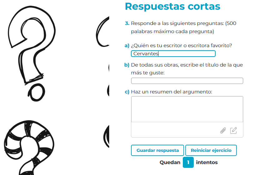 • Respuestas cortas (Ejercicio evaluable por el docente)