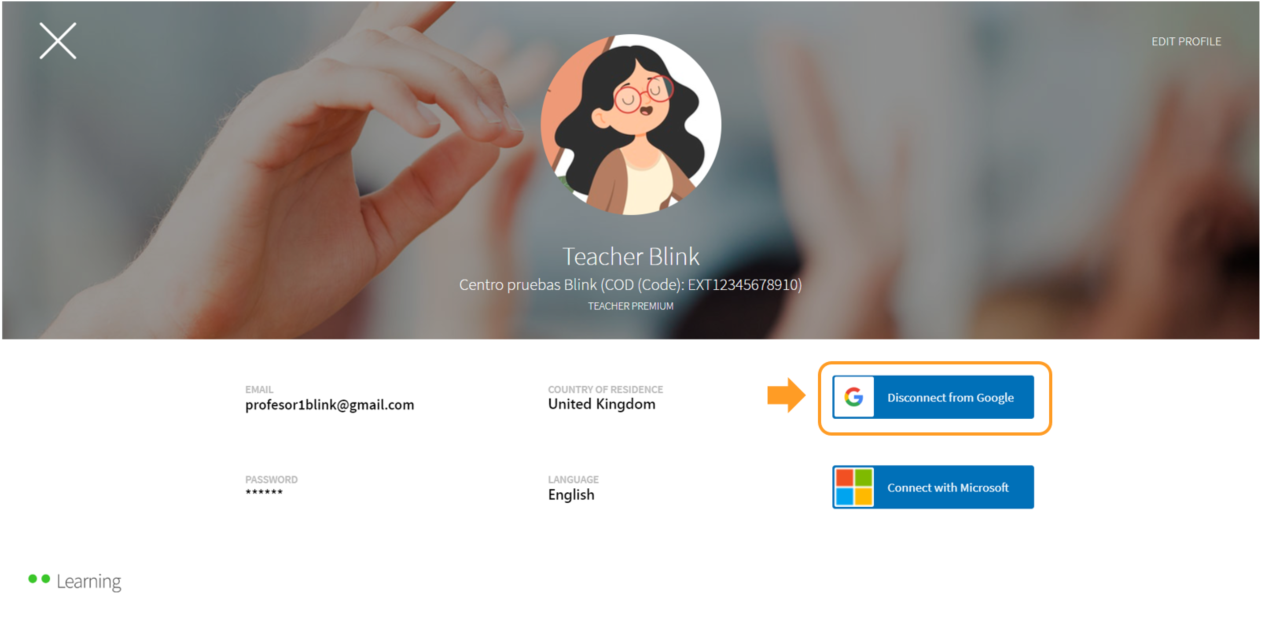 Next, log in to your BlinkLearning user. Check that the accounts are connected from your profile, where Disconnect should appear if they are connected.