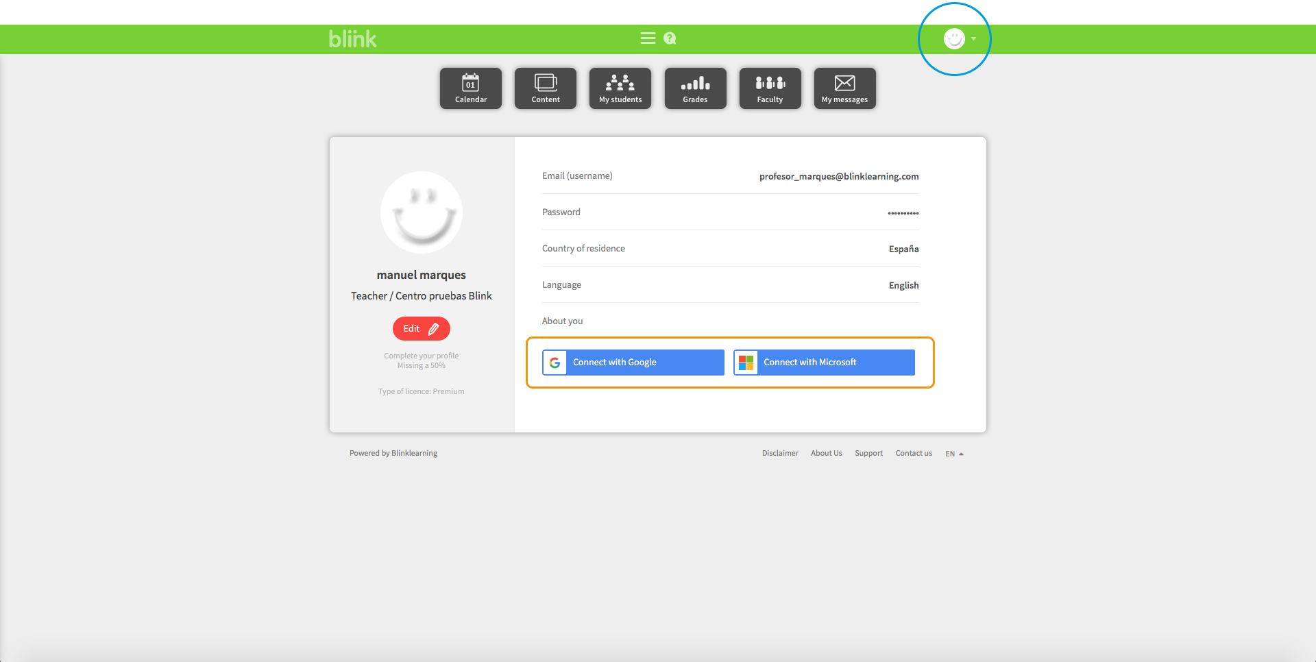 External events refer to events you have scheduled in your Google or Microsoft accounts and are shown on BlinkLearning's calendar when you log in using one of those accounts or log on to them later from your profile.