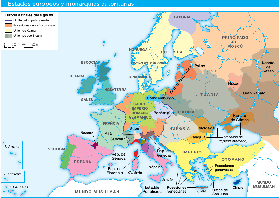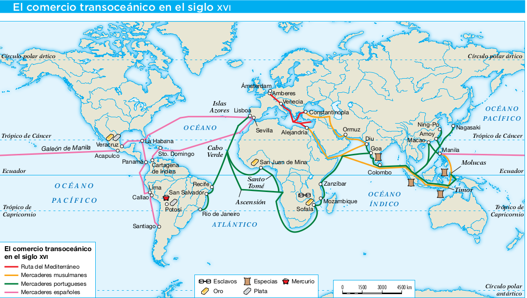 En sucesivas exploraciones por la costa africana, los portugueses ocuparon las islas Madeira, Azores y Cabo Verde; pasaron el cabo Bojador (1431) y llegaron al golfo de Guinea (1460). Finalmente, Bartolomé Díaz dobló el cabo de Buena Esperanza (1487), y Vasco de Gama llegó a la India (1498). En las costas africanas y asiáticas, los portugueses fundaron factorías y levantaron fortalezas. Desde ellas controlaron el comercio de oro y esclavos de Sudán y monopolizaron el comercio de especias con la India y de seda con China.