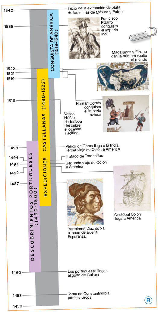 - Sitúa en un eje cronológico los principales acontecimientos relacionados con los descubrimientos.