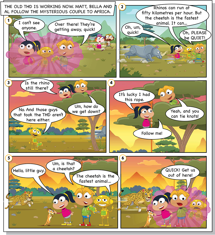 3 How do Matt, Bella and AL get away from the cheetah? Choose.