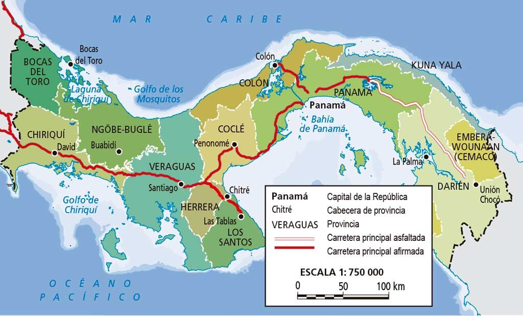 Mapa de Panamá (escala 1:750 000).
