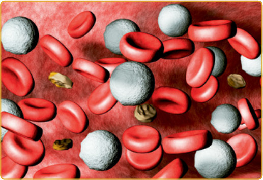 En la figura de la fotografía, las formas esféricas representan los leucocitos de la sangre o glóbulos blancos, que tienen un diámetro aproximado de entre 8 y 20 micrómetros. ¿Cuántas veces ha habido que aumentar la exposición del microscopio para poder representar estos glóbulos blancos como esferas de 10 centímetros de diámetro? Indica el rango de ampliación para el intervalo de medida de un glóbulo blanco real.