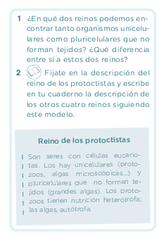 - Los reinos con organismos que tienen tejidos y los reinos con organismos sin tejidos.