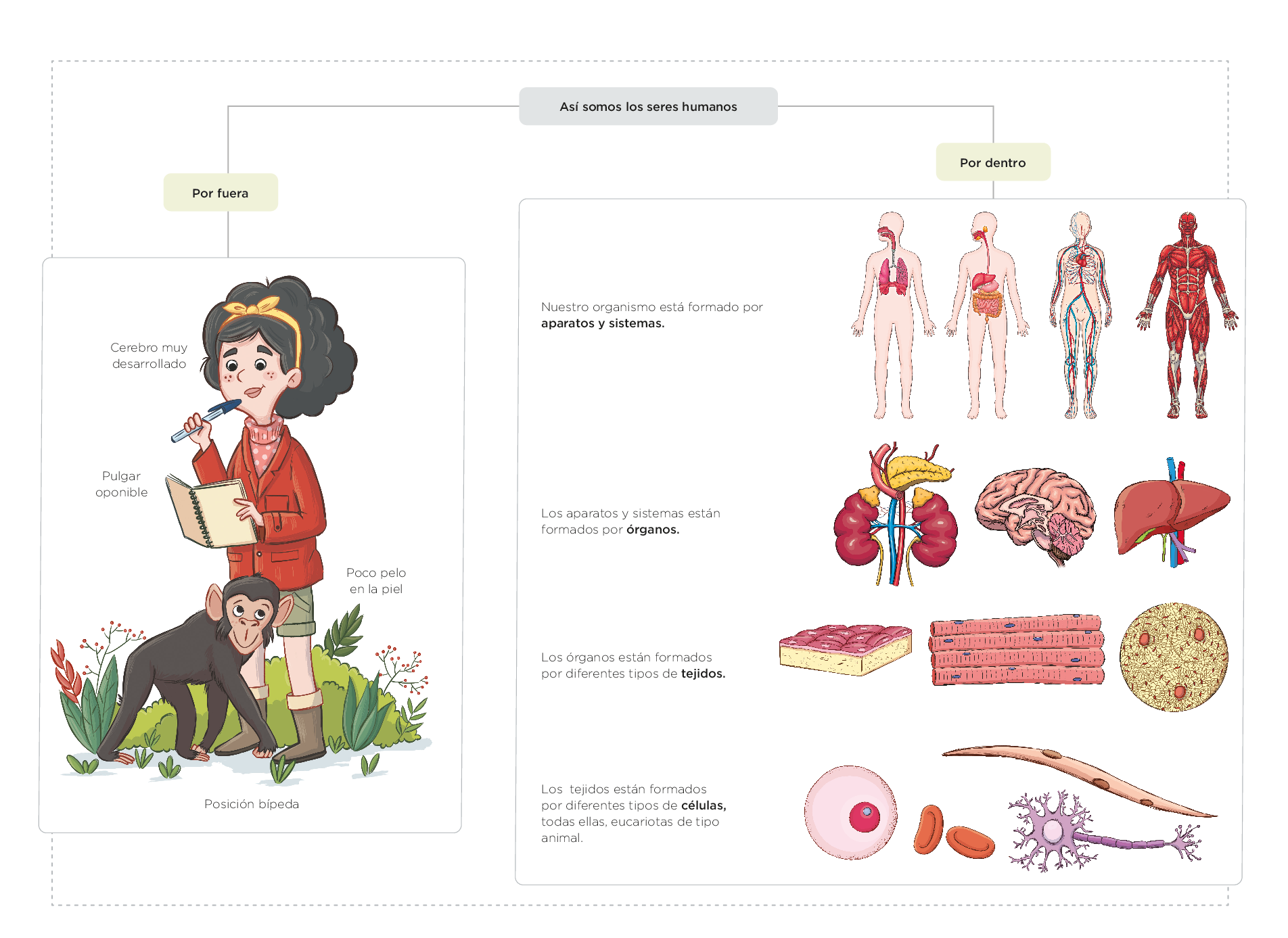 Los seres humanos somos animales y, como tales, tenemos las características siguientes: