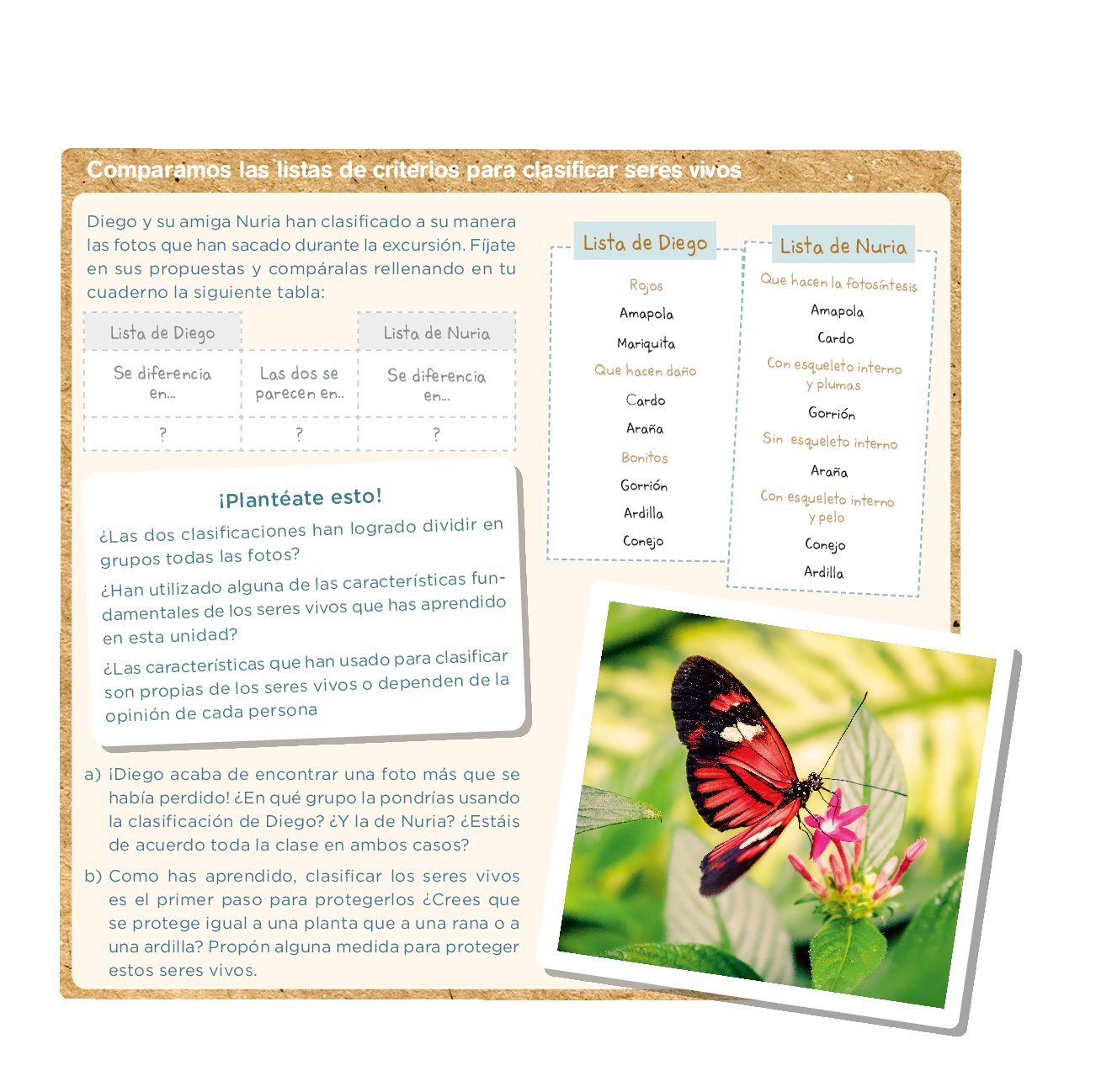 Diego y su clase han hecho fotos de diferentes seres vivos. Pero ¿Cómo han diferenciado a los seres vivos de los no vivos?