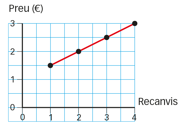 Per exemple, el preu d’un bolígraf amb uns quants recanvis. El preu és directament proporcional a la quantitat de recanvis, però el bolígraf només té un preu. Per tant, la línia recta ascendent no passa pel punt (0, 0). Quan una variable val zero, l’altra no val zero.