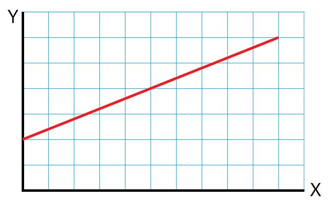 Una línia recta ascendent que no passa per l’origen representa magnituds que estan relacionades, però que no són directament proporcionals.