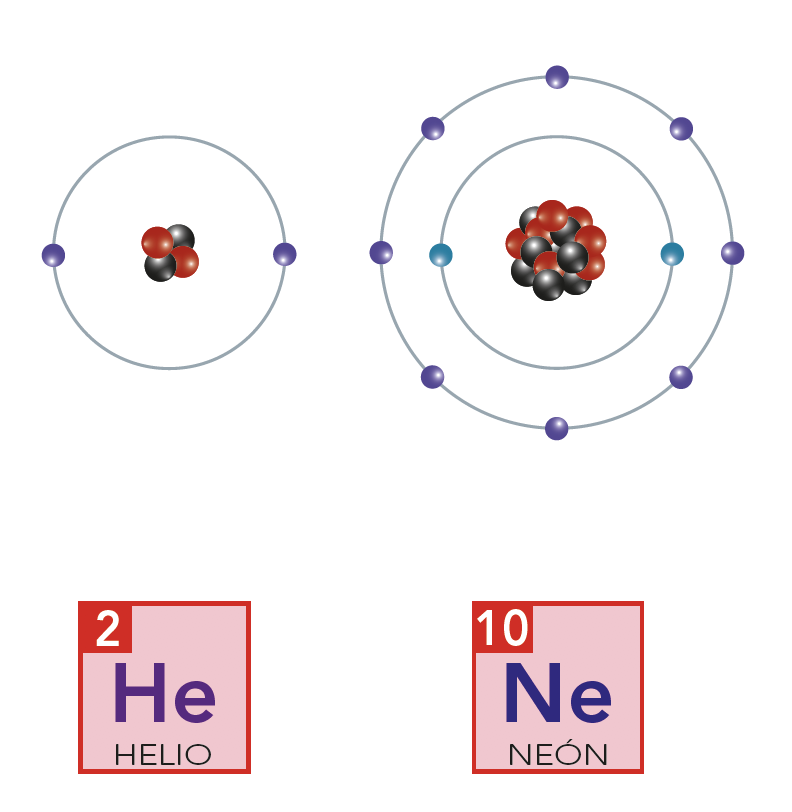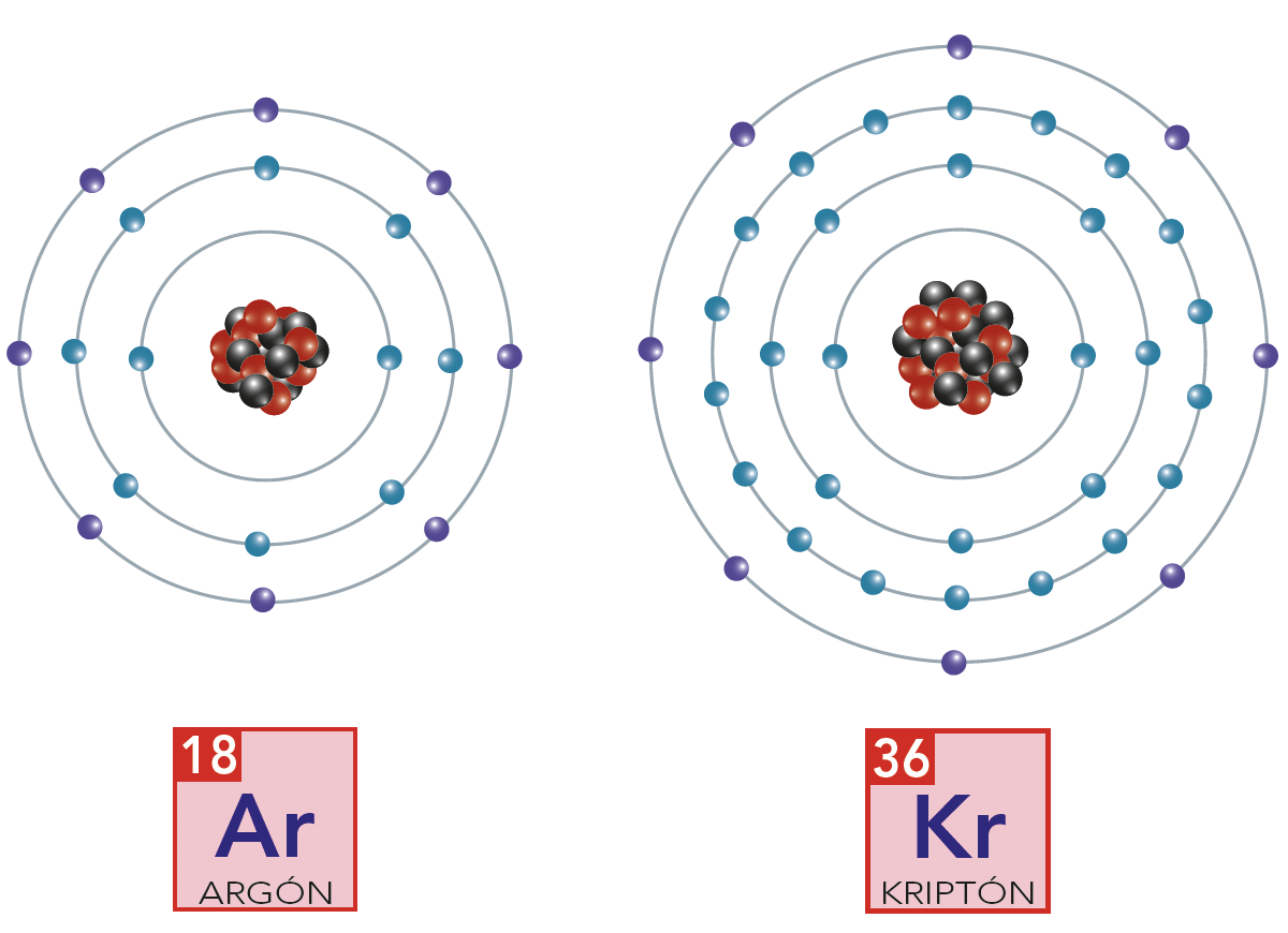 Sin embargo, el argón y el kriptón no tienen esta capa completa, aunque sí poseen ocho electrones en ella.