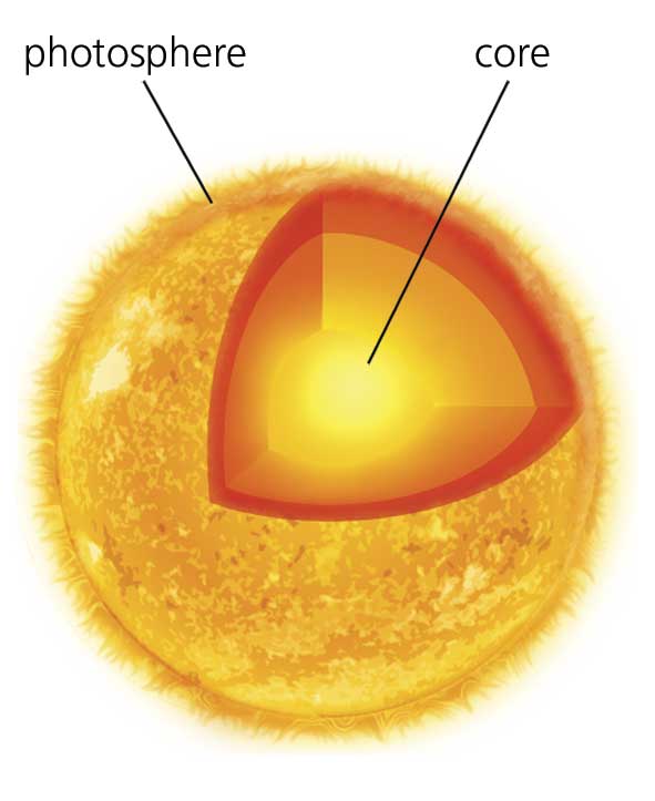 • The inner layers contain the heaviest materials. In the innermost layer of the sun, the core, nuclear fusion reactions occur that generate energy.