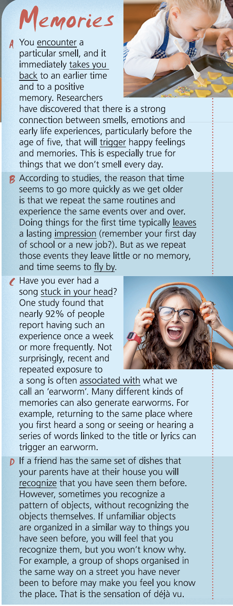 Listen to four people talking about memories. Match each person to the event or situation they talk about.
