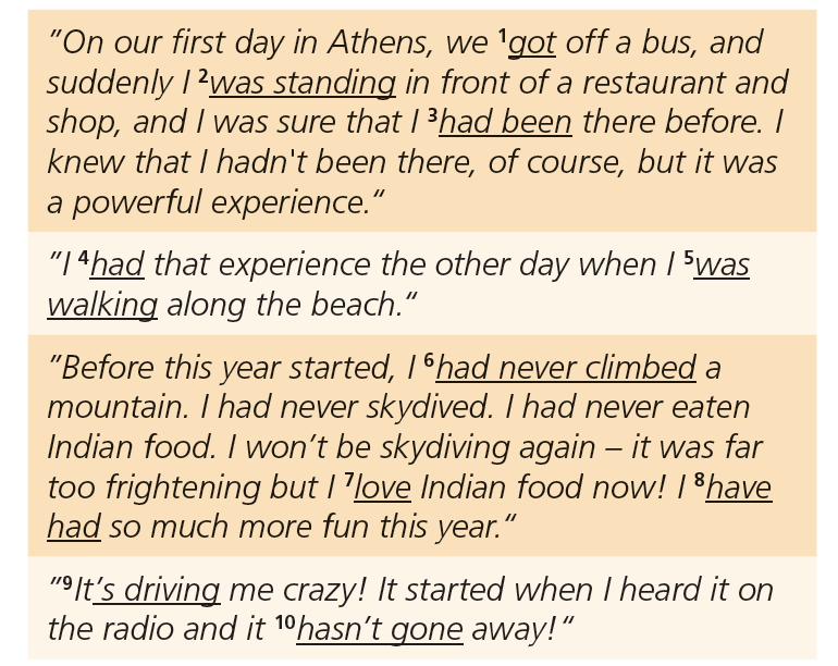 Look at the extracts from the listening. Match the underlined verb forms to the tenses.