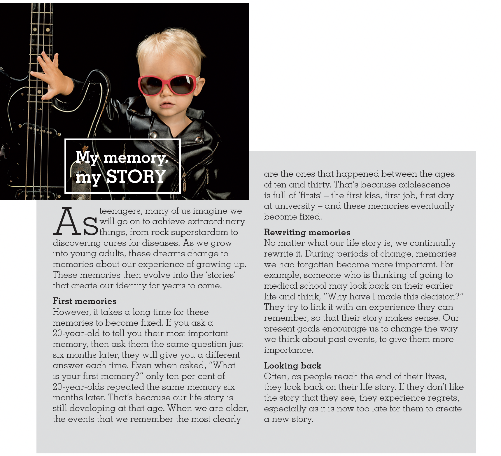 2 Only  people in their twenties repeat the same stories if you ask twice for their first memory.