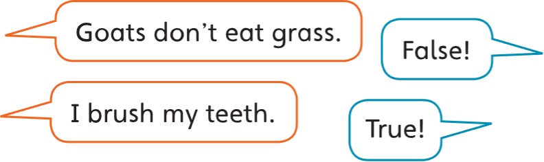 He doesn't eat coconuts It doesn't read books She goes to school He washes his face It doesn't read books every day