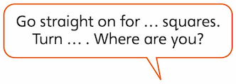 2 Go straight on for seven squares, turn left, go straight on for three squares.