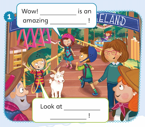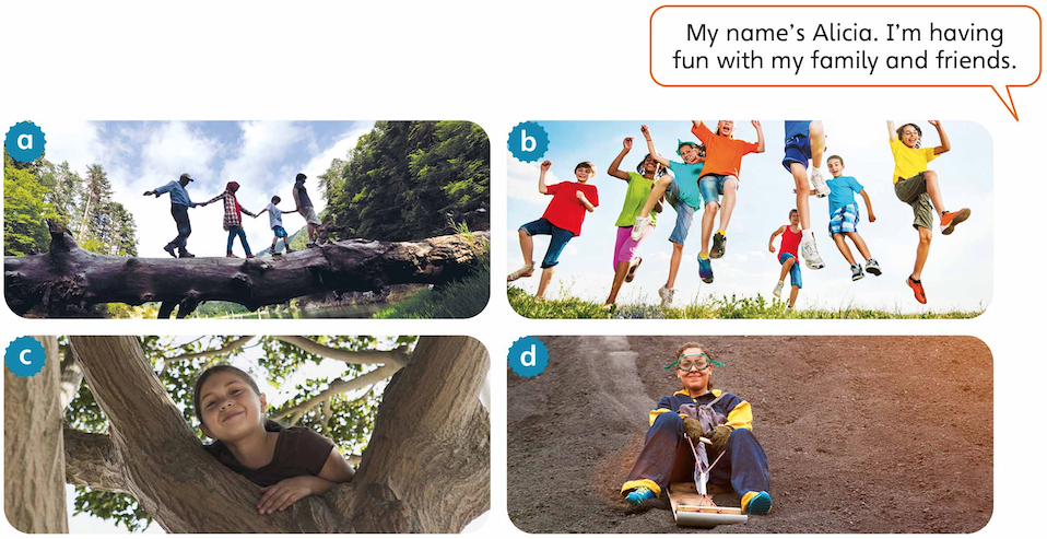 6 Read and complete to describe pictures a–d. Use words from this picture.