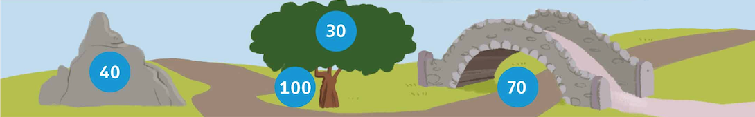 rock under behind 100 in tree 30 bridge on 40 70