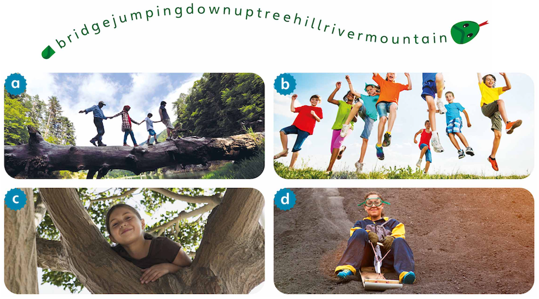 3 I’m jumping with my friends. We’re on a hill. Jump, jump, jump!