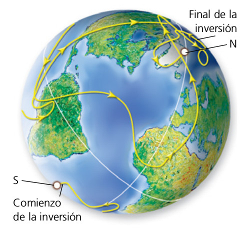 Trayectoria recorrida por el polo norte durante una de las inversiones. Desde que se inició, hace unos 15 Ma, hasta que concluyó, pasaron más de 15 000 años.