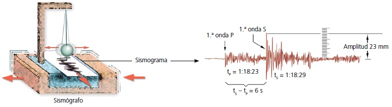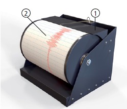 Sismógrafo (1) y sismograma (2).