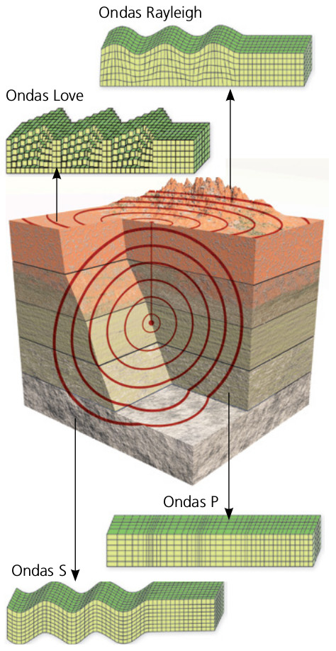 Las ondas sísmicas son ondas materiales, como las ondas sonoras, que necesitan medios físicos para propagarse a través de ellos. Cuando se produce un terremoto se generan tres tipos de ondas sísmicas: