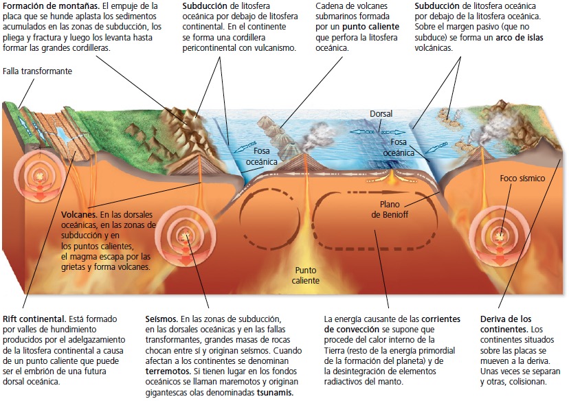 Movimientos de las placas litosféricas. Estas experimentan movimientos en vertical y en horizontal: