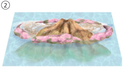 Si pones a calentar agua en un recipiente en cuya superficie flotan unos cubitos de hielo (A), podrás observar las corrientes de convección: estas se generan cuando se calienta un fluido que se expande y se hace menos denso, por lo que asciende (1); el fluido frío desciende y ocupa su lugar (2).