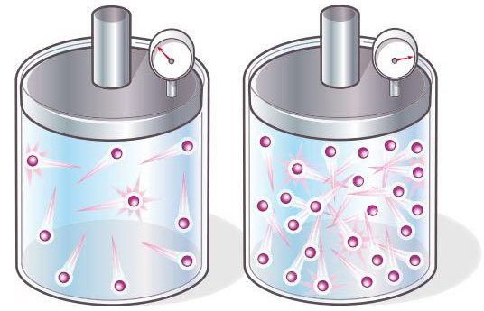 En otro experimento similar, Gay-Lussac mantuvo fijo el volumen mediante un recipiente herméticamente cerrado y observó una proporción directa entre la temperatura del gas y su presión. La ley de Gay-Lussac también se obtiene a partir de los datos experimentales.