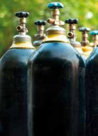 Oxígeno medicinal. El oxígeno para uso médico se almacena en botellas a alta presión.