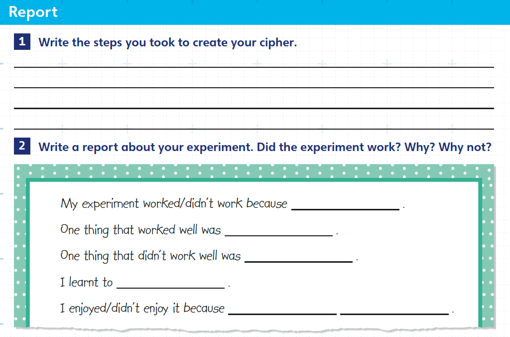 3 Use the secret code you learnt in 1 to write one more line about how you felt in 2.