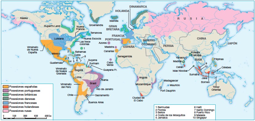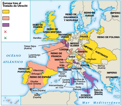 En el siglo xviii se implantó en el continente el principio del equilibrio europeo, impulsado por Gran Bretaña. Sostenía que las potencias europeas debían mantener equilibradas sus fuerzas para impedir que ninguna se impusiese a las demás. En el terreno colonial, las luchas y las victorias de Gran Bretaña la convirtieron en la mayor potencia colonial del mundo.