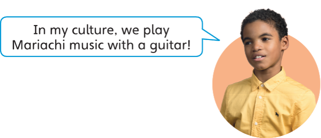Some musicians play a string instrument called the kora. It is like a guitar, but it’s got twentyone strings. The musician plays eleven strings with the left hand and ten with the right hand.